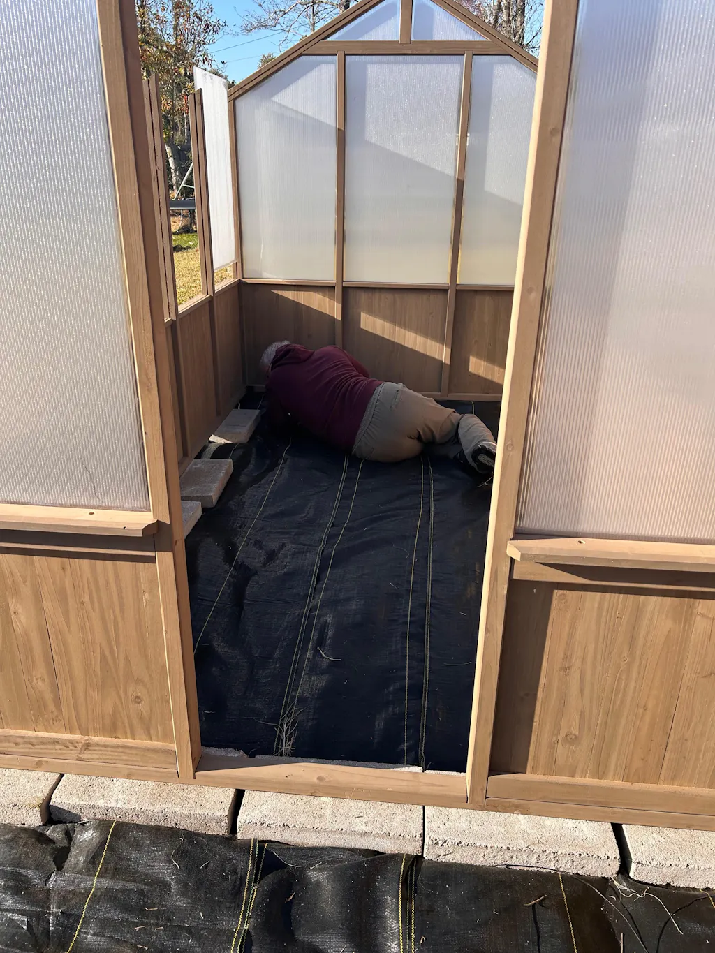 I bought the web ground cover to line the floor of my greenhouse and I’m using it to line raised beds